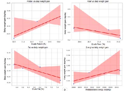 The use of traditional feed depends on the location of pig production. Information regarding traditional ration variations and nutritional content is not yet available, especially in rural areas of Timor Island. This research aims to identify the types and nutritional composition of traditional feeds used in rural pig rearing and to analyze their effects on production efficiency. The study was conducted in four villages in Taebenu District, Kupang Regency. This research used a descriptive observational design with a cross-sectional approach. Data collection was carried out to provide an overview of the types of traditional feed used, their nutritional composition, and their relationship to production efficiency. The data obtained were analyzed descriptively to describe the distribution of feed types and their nutritional composition; Pearson correlation tests and linear regression analyses were used to determine the relationships and their influence on production efficiency. The results of the research show that the composition of traditional feed across the four sampling locations is generally not much different and is highly diverse, which affects the diversity of its nutritional value. In this study, there was a positive correlation between nutrition and body weight gain and feed conversion. At the same time, regression analysis showed that crude protein and metabolic energy were the main factors that increased production efficiency. Based on the results of this research, it can be concluded that variations in local feed types result in differences in nutritional composition. The results of correlation analysis show that feed composition has a significant influence on the growth and production efficiency of pigs, crude protein and energy metabolism have a positive relationship with body weight gain and negative with feed conversion, while crude fiber has the opposite effect, regression analysis shows that crude protein and metabolic energy are the main factors that increase production efficiency, while crude fiber interferes with livestock performance.